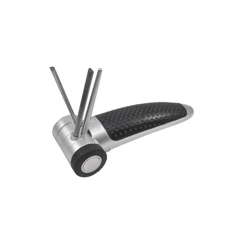Cet aiguiseur Diamond-Vee de la marque DMT possède 2 tiges diamant à grain fin pour affûter vos lames, une troisième tige permettra de parfaire le polissage.
