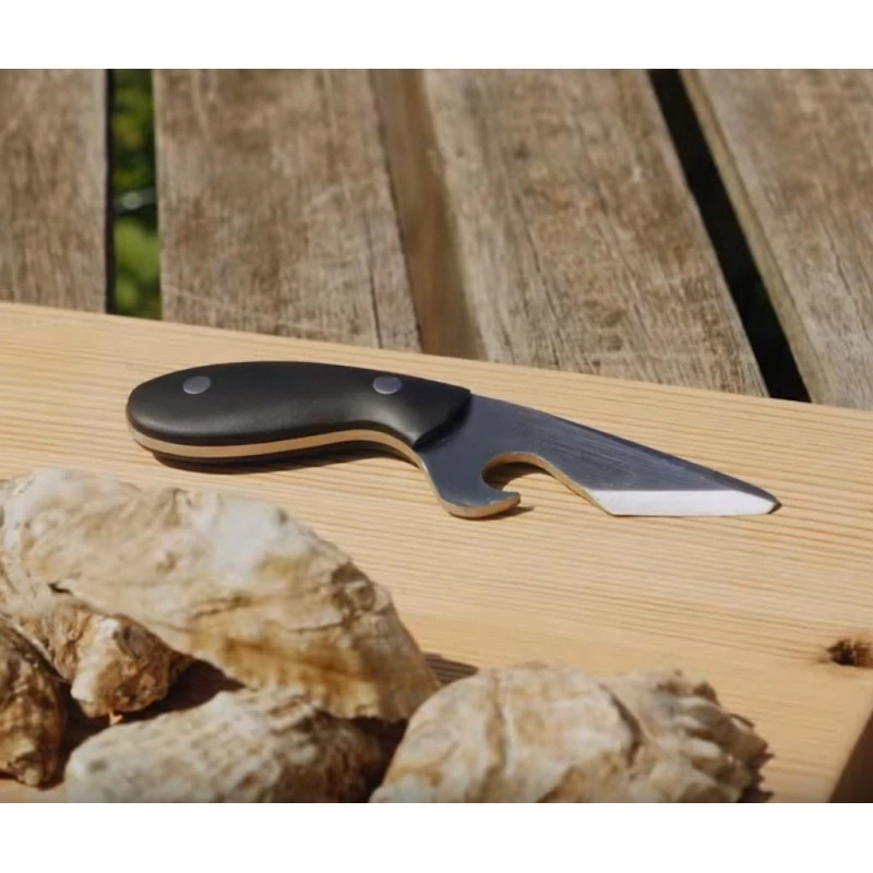 La pointe de la lame effilée permet une pénétration dans la coquille et un effet de levier pour une ouverture facile.