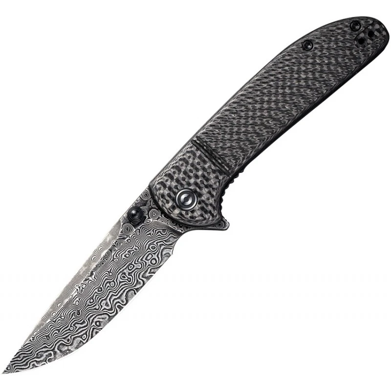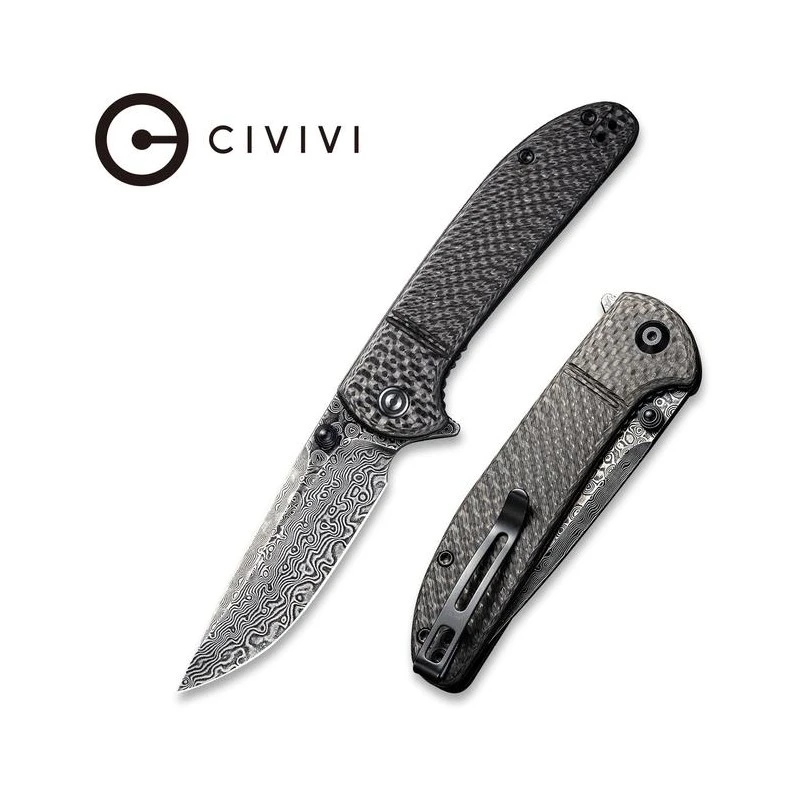 Voici le Couteau Badlands Vagabond de chez Civivi qui offre une lame lisse de 8.3m en Damascus et un manche en fibre de carbone sergé avec une finition noir.