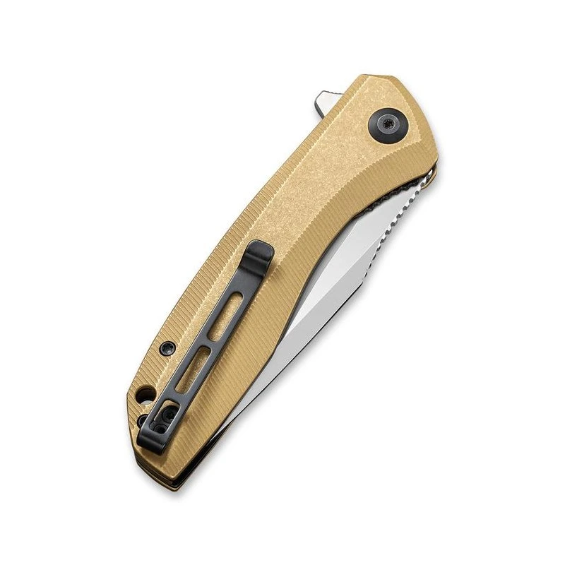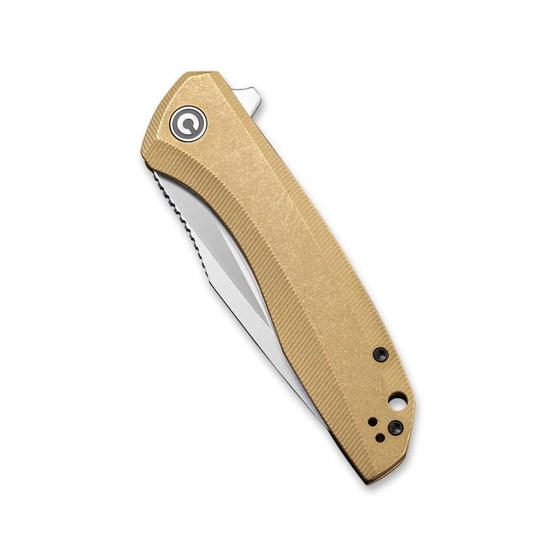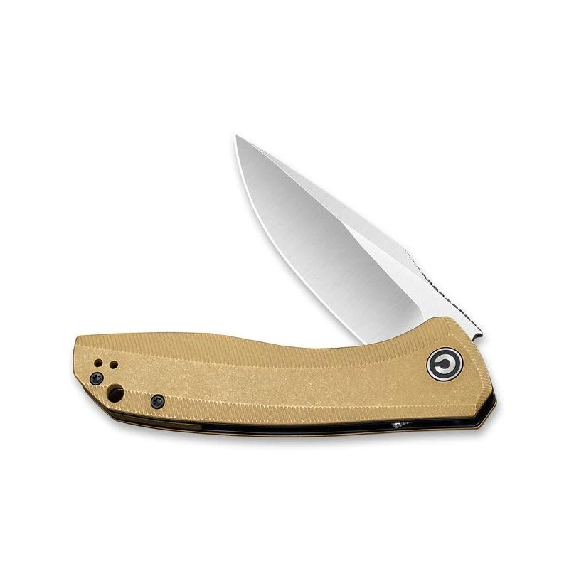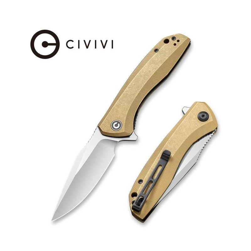 Voici le Couteau Baklash de chez Civivi qui offre une lame lisse de 8.9cm en acier 154CM avec une finition satin et un manche en laiton avec finition stonewash.