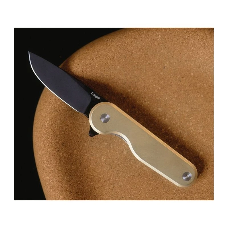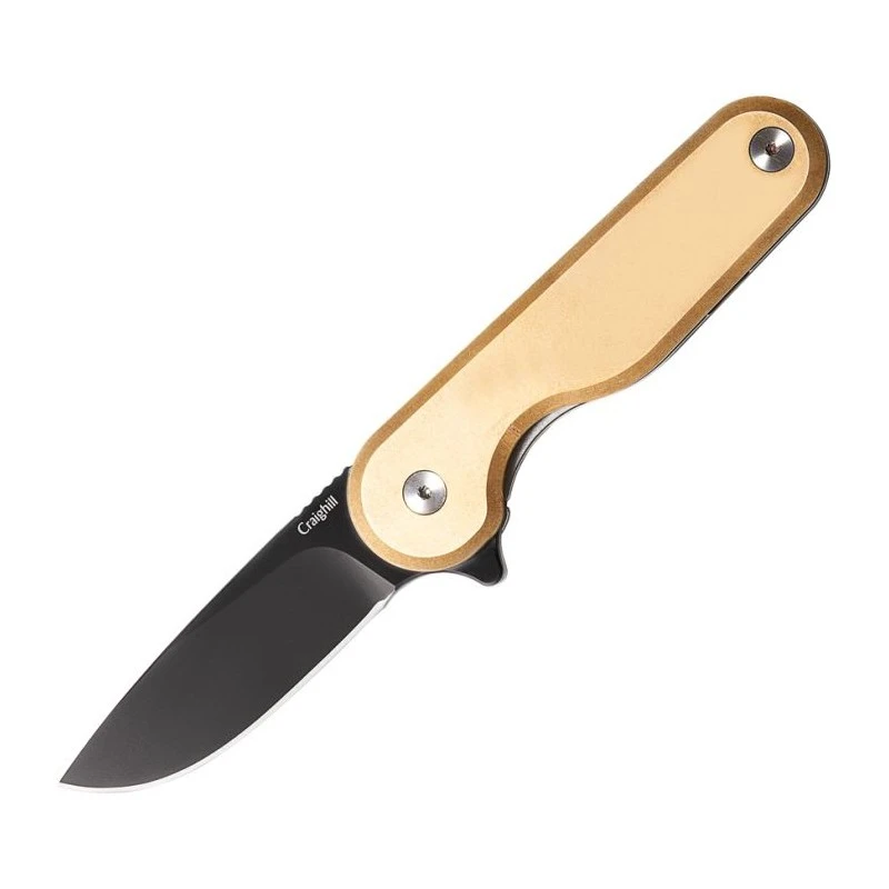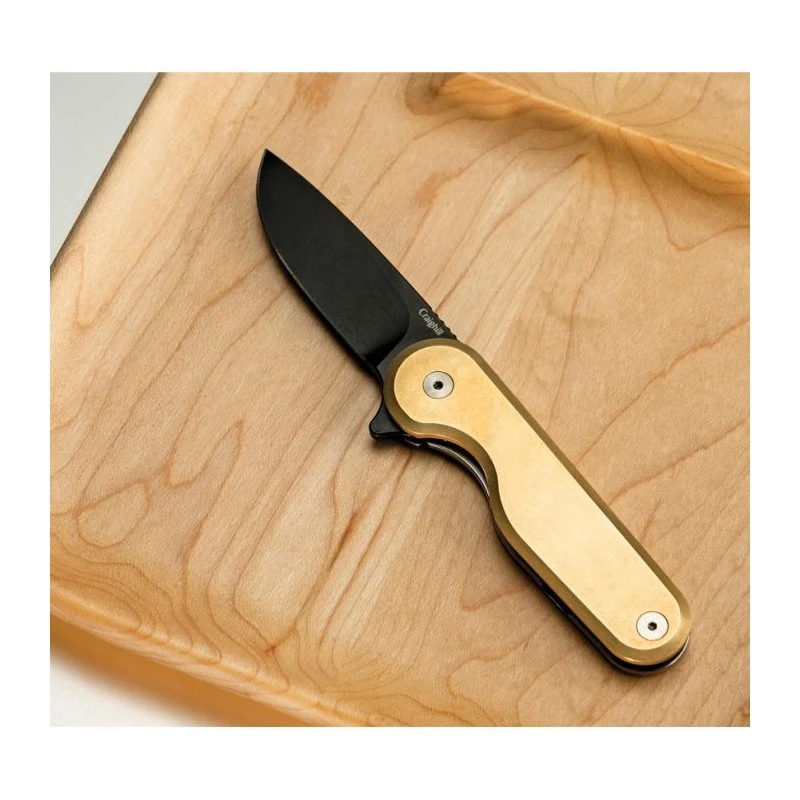 Le couteau de poche Rook de Craighill offre une qualité maximale. La version Tricolor présente un corps mi-laiton mi-inox, et une lame revêtue de PVD noir pour une touche de précision tactique.