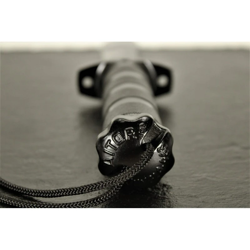 Très polyvalent, son manche comprend un kit de pêche, de couture, un scalpel, des pincettes, une boussole, un miroir de signalisation et une fronde.