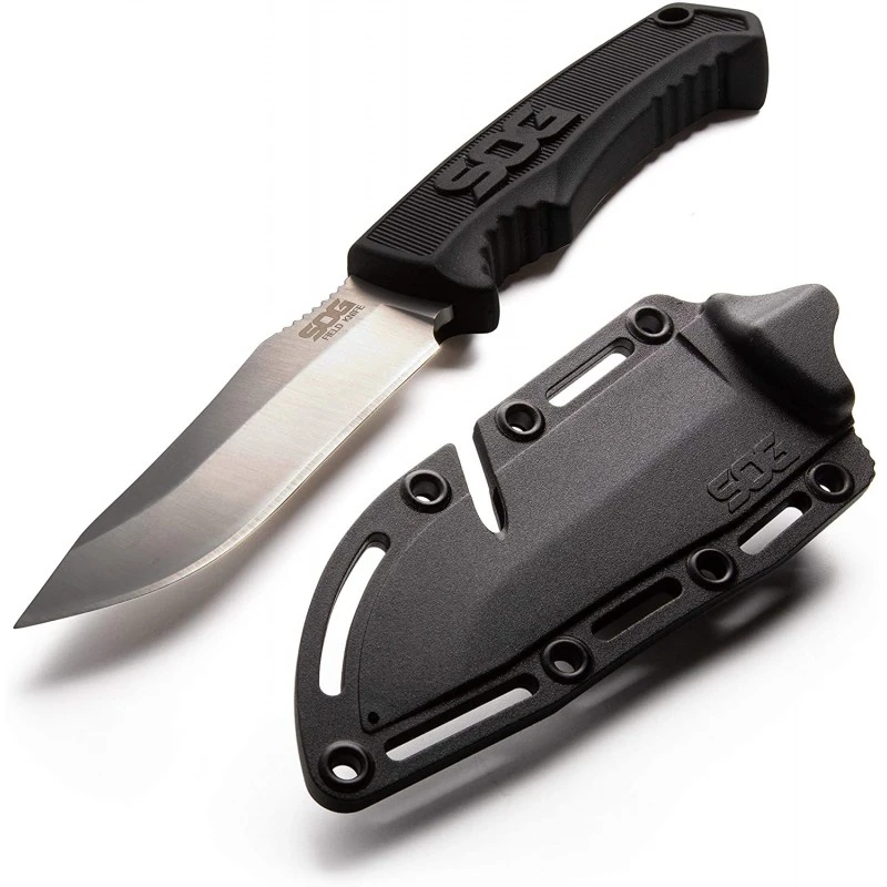 Parfait pour le terrain, voici le couteau Field SOG qui possède une lame lisse de 10.2cm en acier inoxydable 7Cr17MoV avec une finition satiné et un manche de couleur noir en caoutchouc TPR.