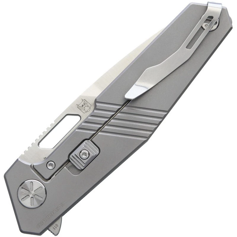 Le Couteau Havran REAL STEEL offre une lame lisse de 9.5cm en acier S35VN avec une finition satin et un manche en fibre de carbone d’un côté et en titane de l’autre.
