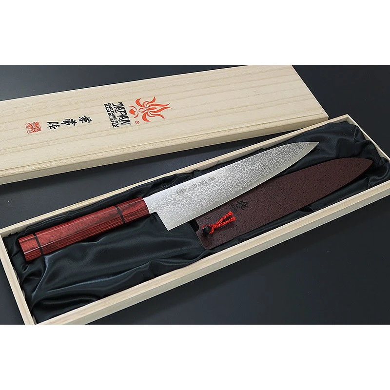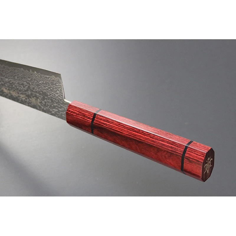 Ce couteau japonais d’exception Minamo Kaze de la marque Kanetsune dispose d’une lame composée de 63 couches de damas avec un noyau en acier inoxydable japonais à haute teneur en carbone.