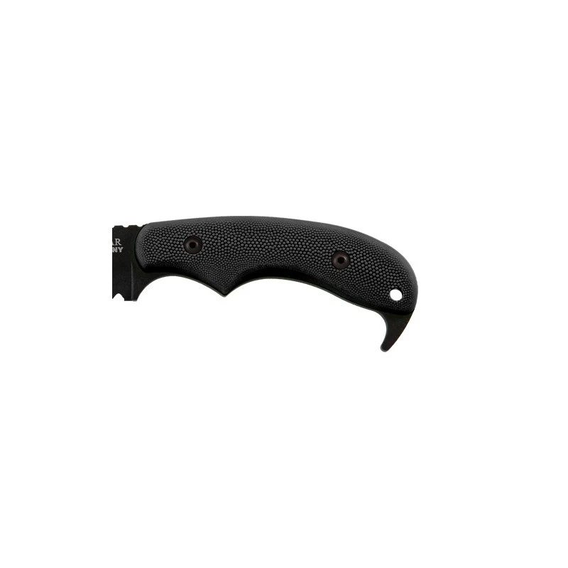 Sa lame en 1095 Cro-Van de 19.4cm Noir est semi-dentelée.