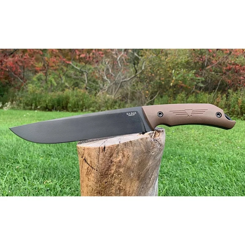 Massif et très robuste, le Couteau Ka-Bar Jarosz Camp est conçu avec une lame lisse de 20.3c en acier 1095 Cro-Van avec une finition noir et un manche en Ultramid marron.