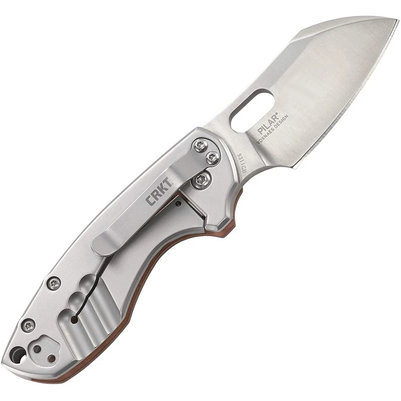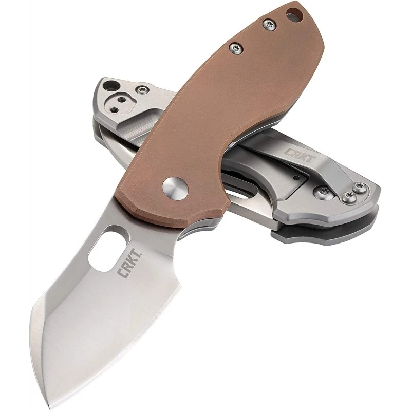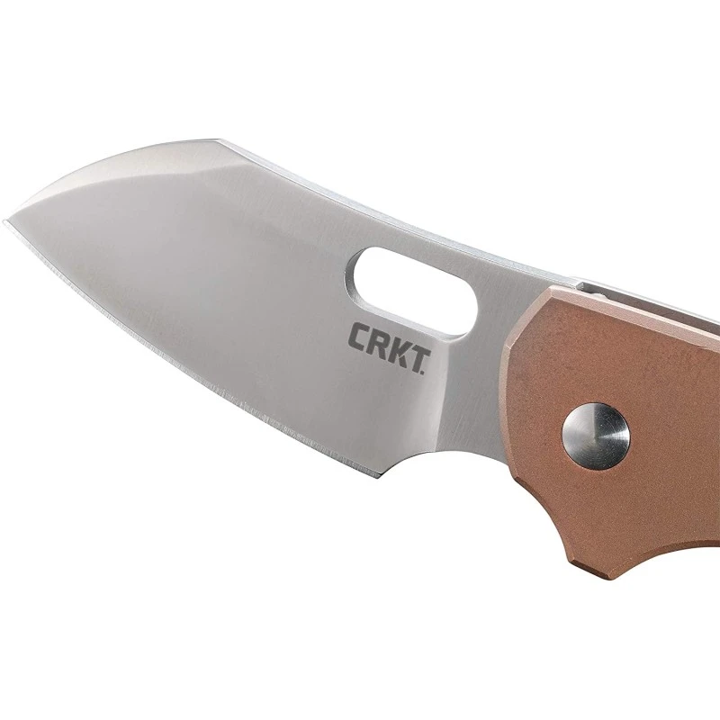 Discret, le Couteau Pilar Copper CRKT offre une lame lisse en acier 8Cr13MoV avec une finition satinĂ©e ainsi qu’un manche en cuivre Ă l’avant et en acier inoxydable de l’autre cĂ´tĂ©.