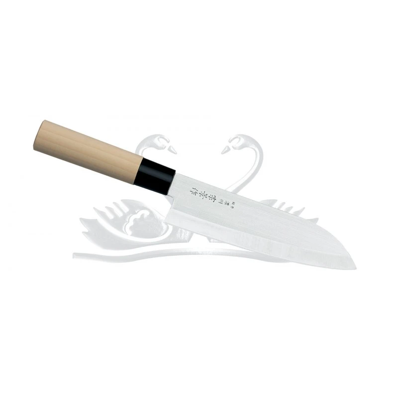Le couteau Santoku japonais DCIHH01 de la marque Due Cigni est un véritable couteau Japonais. Il dispose d’une lame en acier inoxydable 420JS avec revêtement satin et une poignée en érable.