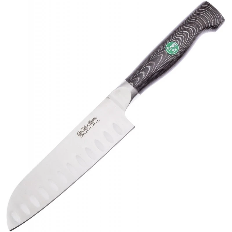 Le couteau Santoku de la marque Hen & Rooster est fabriqué en Allemagne. De bonne qualité il comprend une lame en acier inoxydable 4116 et une poignée en fibre de verre G10.