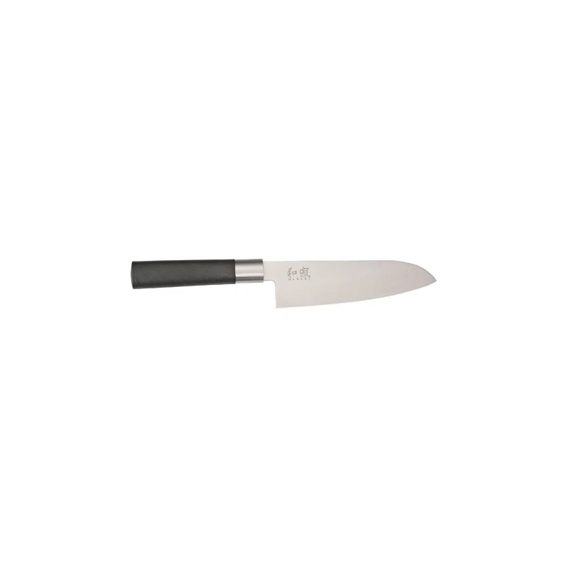 Le couteau Santoku de la marque Kershaw dispose d’une lame en acier inoxydable à haute teneur de carbone et une poignée en polypropylène et poudre de bambou.