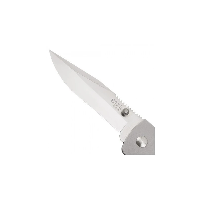 Voici le Couteau SOG SlimJim qui possède un manche en Inox de couleur Gris.
