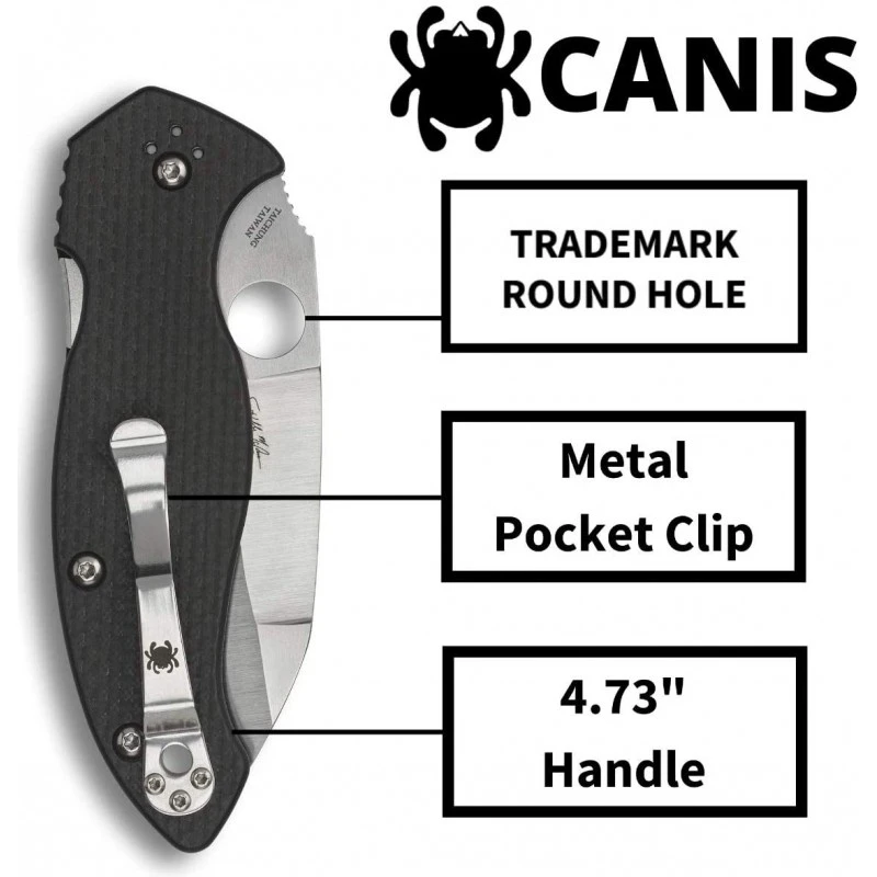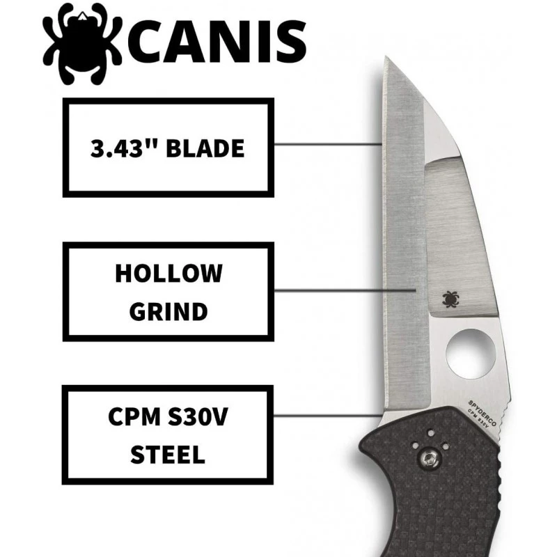 Voici le couteau Spyderco Canis qui possède un manche en Fibre de carbone G-10.