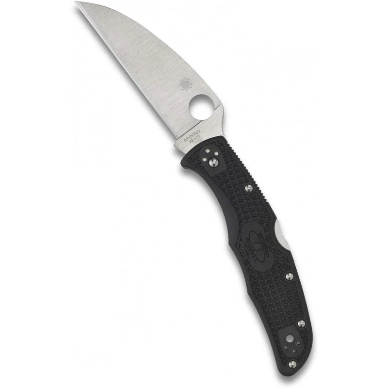 Le couteau Spyderco Endura 4 possède un manche en nylon renforcé (FRN) ainsi qu’une lame Wharncliffe pliable en acier inoxydable VG-10 satiné de 9.6cm qui est lisse avec un système de verrouillage à cran d’arrêt.