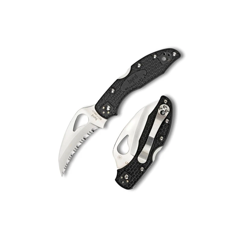 Voici le couteau Spyderco Hawkbill qui possède un manche en FRN (Nylon renforcé) noir.