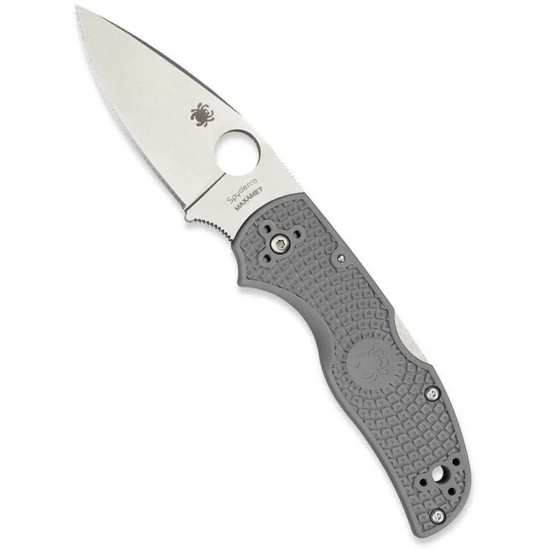 Voici le couteau Spyderco Native 5 qui possède un manche en FRN (Nylon renforcé) de couleur noir et une lame pliable en acier unique Maxamet de 6.1 cm lisse avec un système de verrouillage à cran d’arrêt.