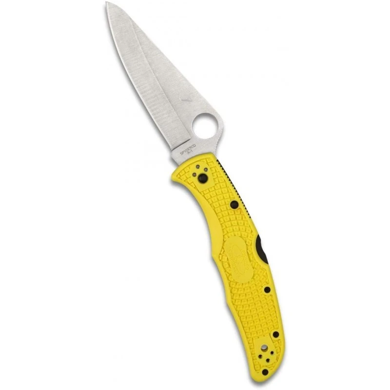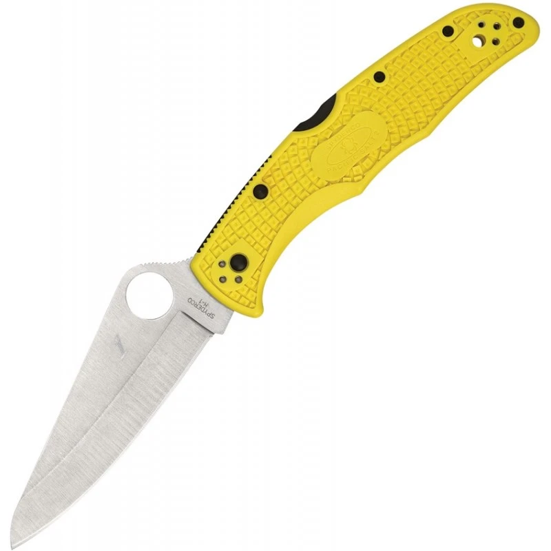 Voici le couteau Spyderco Pacific Salt II qui possède un manche en FRN (Nylon renforcé) de couleur jaune.