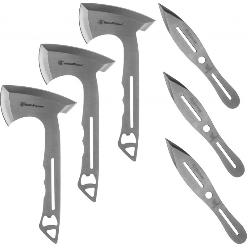 Cet ensemble composé de 3 haches et de 3 couteaux à lancer de la marque Smith & Wesson, vous permettra de vous exercer et de vous perfectionner dans l’art du lancer!