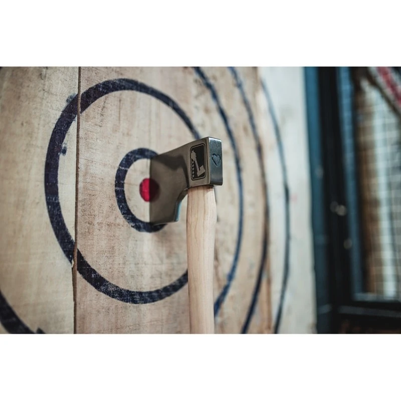Parfaitement équilibrée, la Hache de lancer Queen of Hearts de la WORLD AXE THROWING LEAGUE est issue de l’association officielle de lancer de hache & couteaux américain.