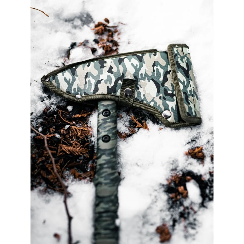 Parfait pour la chasse et le camping, cette hache est extrêmement tranchante et est livrée avec un étui camouflage.