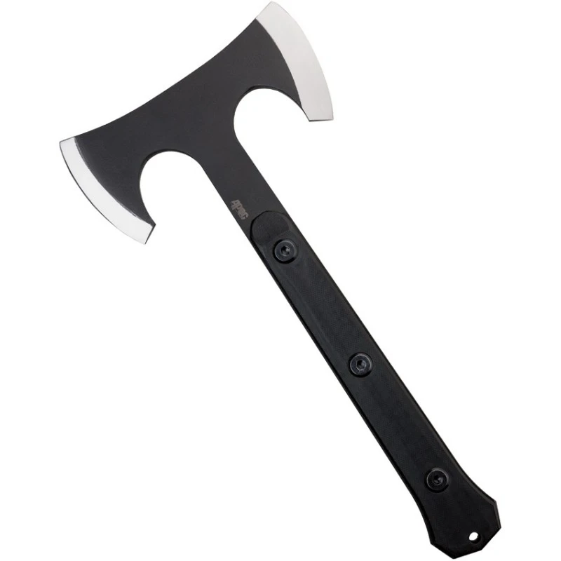 Cette hache double lame d’Apoc mesure 30 cm avec une tĂŞte en acier de 15 cm et un tranchant de 7 cm. Elle est conçu avec une finition anodisĂ©e noire pour une protection et une rĂ©sistance plus efficace.