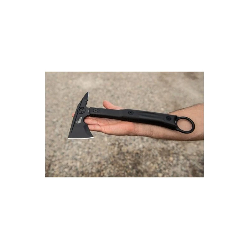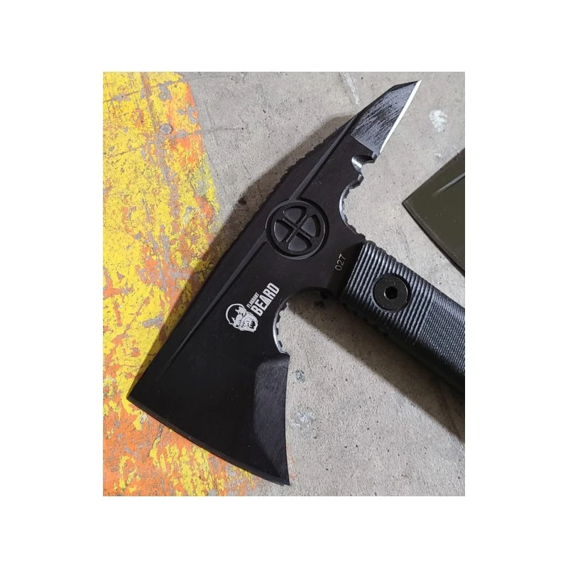 La Hache Templar FLAGRANT BEARD est conçu avec une tête de 16.5cm en acier 1095HC finition Cerakote, un tranchant de 6.7cm et un manche en G10 (fibre de verre) noir.