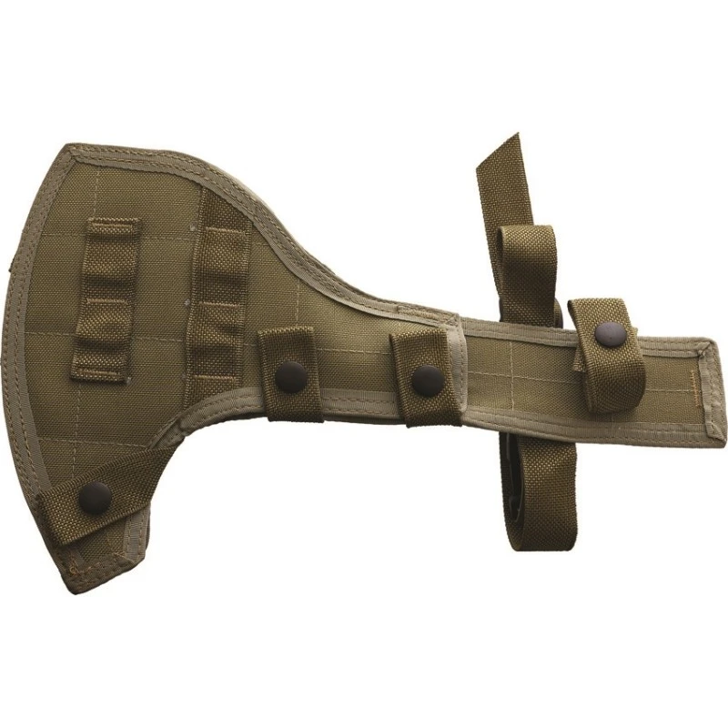 La hachette SP16 Spax Tan est livrée avec son étui en nylon vert compatible MOLLE.