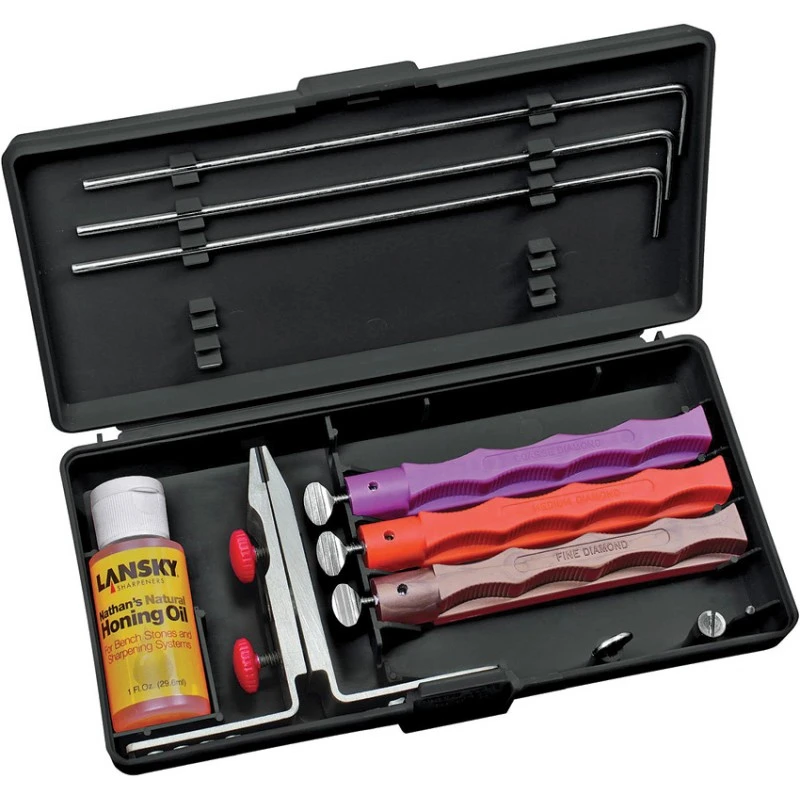 Le kit d’affûtage 3 pierres Standard Diamond est efficace pour affûter rapidement un bord ou refaire un bord avec un angle différent.