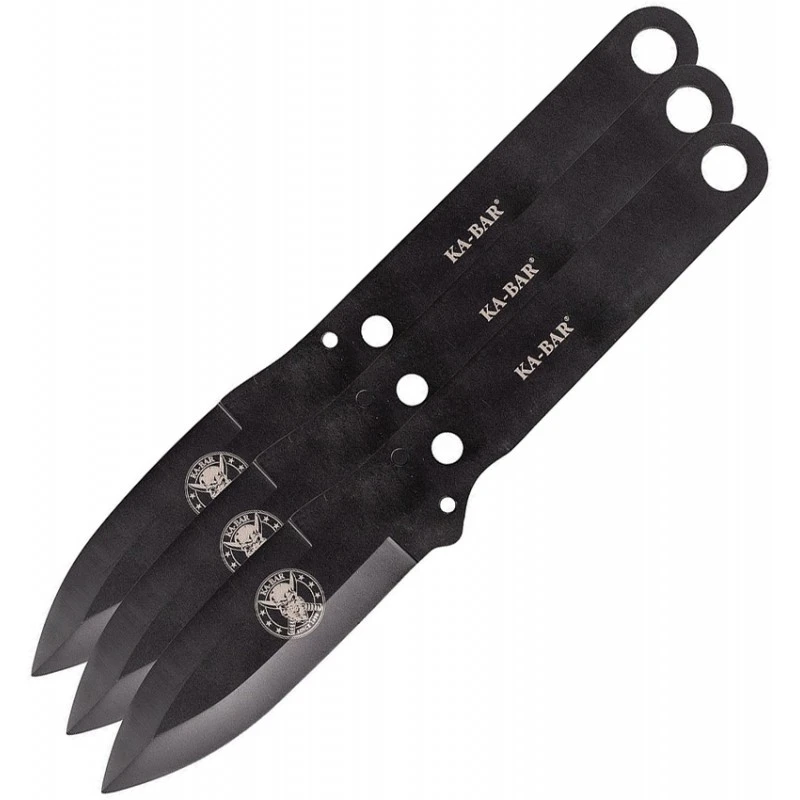 Conçu en acier inoxydable 3Cr13, ce kit contient 3 couteaux à lancer de la marque Ka-Bar, chaque couteau offre une longueur totale de 23.8cm et une lame à double tranchant de 10.2cm.