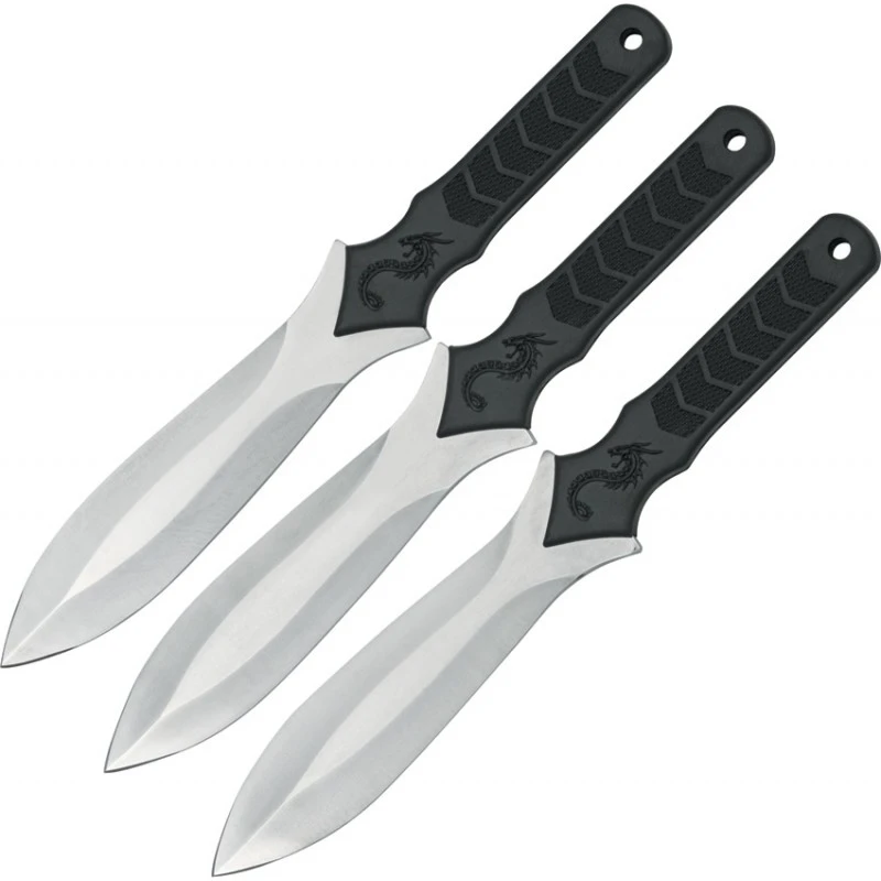 Conçu en acier inoxydable 420 de haute qualité, ce kit contient 3 couteaux à lancer Rite Target ayant chacun une longueur totale de 24.8cm et une lame à double tranchant de 15.2cm.