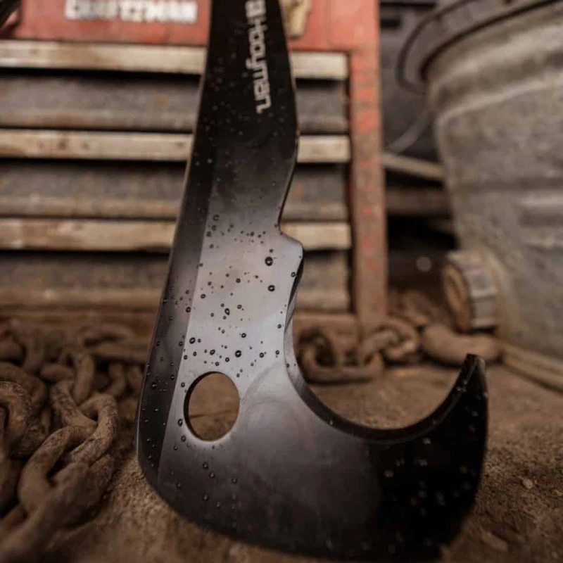 Cette machette est dotée d’un crochet inversé pour diviser et couper la végétation de manière transparente.
