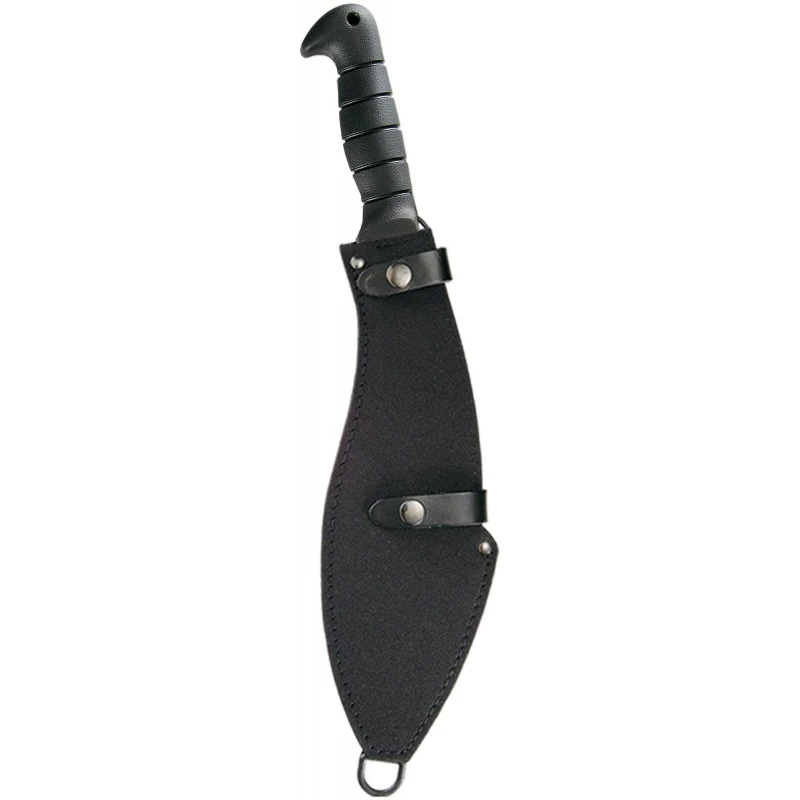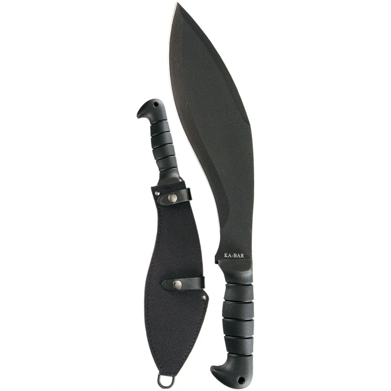 La machette Kukri mesure 43cm au total avec une lame de 28cm et est livrée avec un étui combiné cuir noir/Cordura.