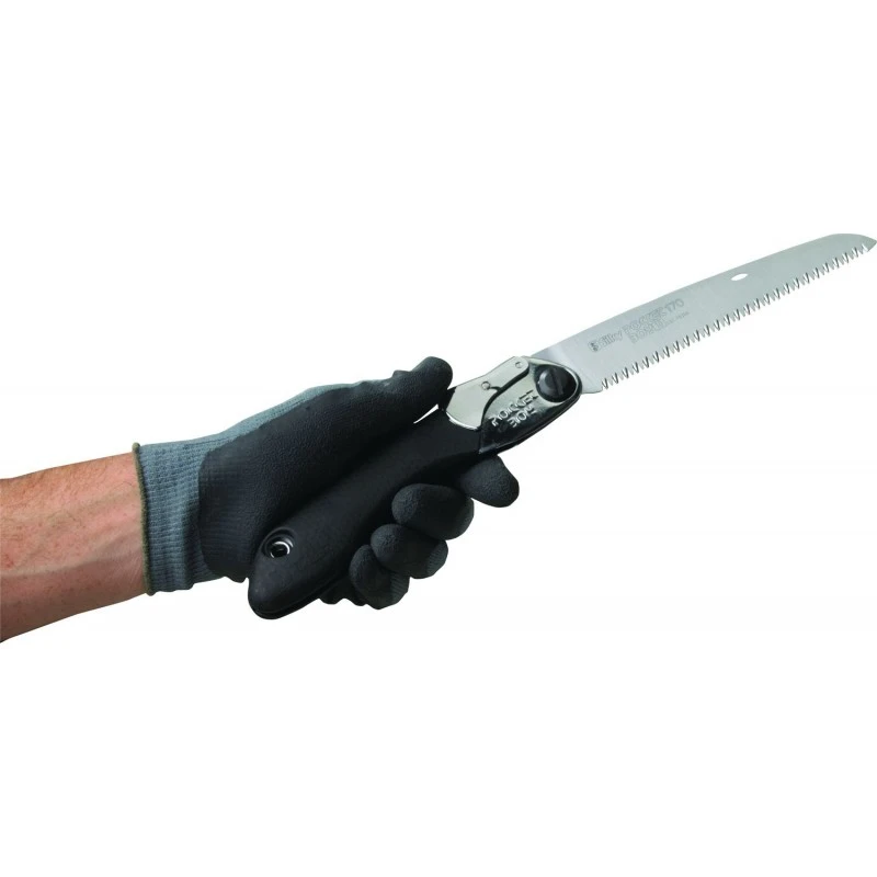 Compacte et légère la Scie bushcraft pliante PocketBoy SILKY est conçu avec une lame de 17cm tranchante avec des dents moyennes et affûtée avec précision qui permet une coupe raide, propre et lisse.