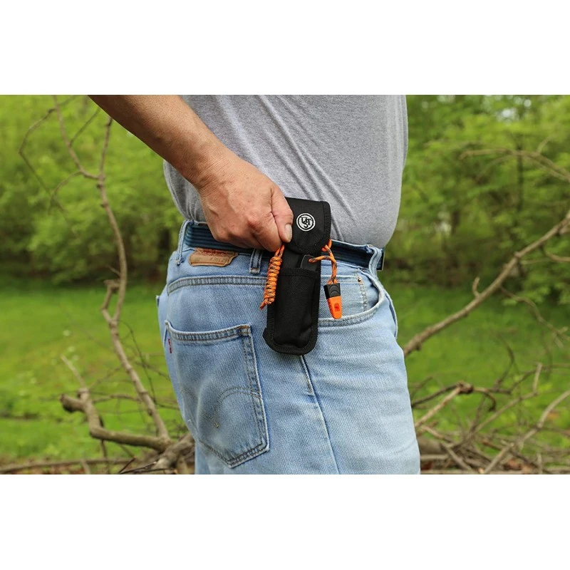 Idéale pour la randonnée ou le camping, la Scie Pliante Para Pro UST offre une lame de 14cm en acier inoxydable recouverte d’oxyde noir et un manche TPR de couleur orange.