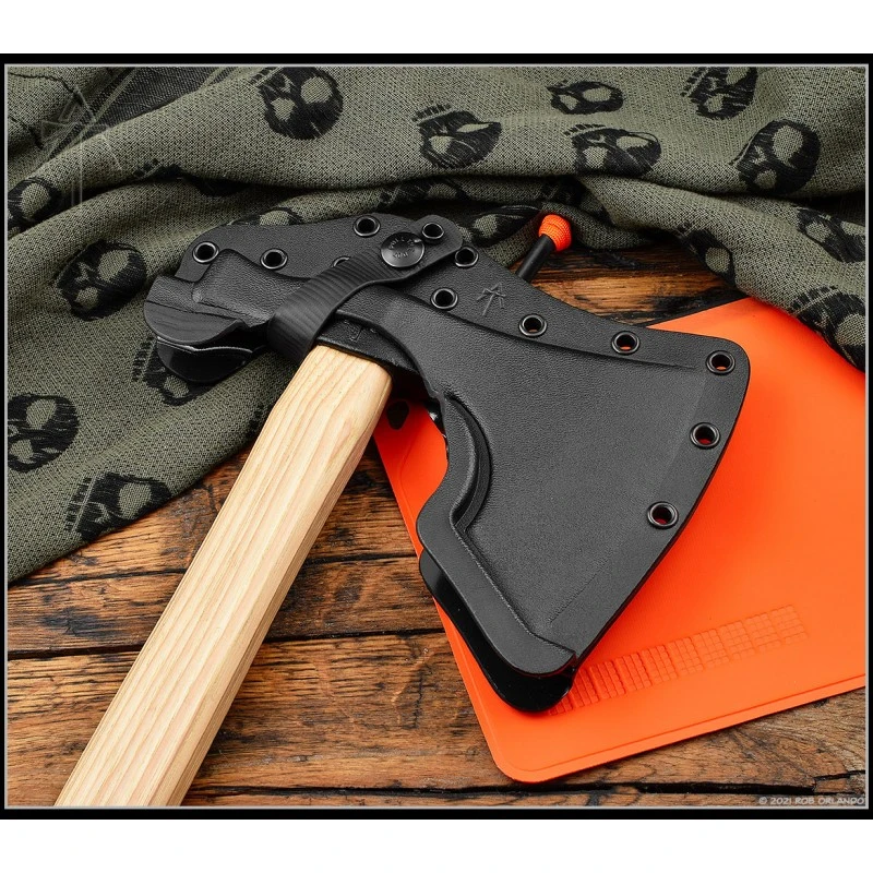 Cette hache tomahawk de 1 kg est fournie avec son étui de ceinture en Kydex noir avec sangles MOC.