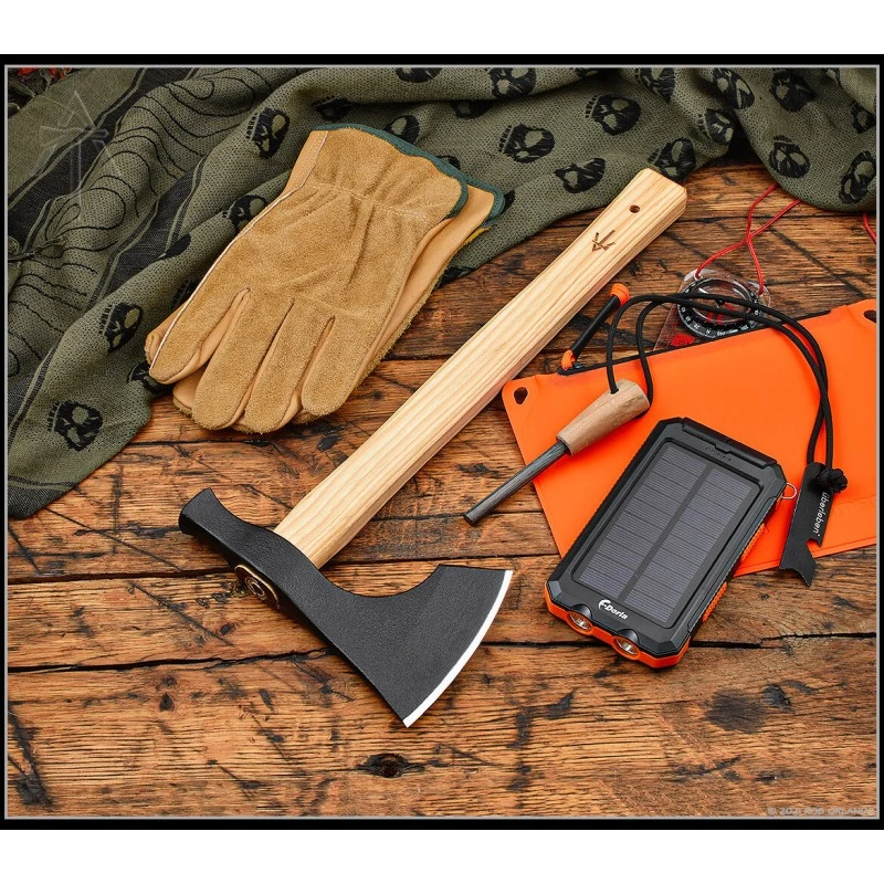 La hache Tomahawk Model 2 d’American Tomahawk dispose d’un manche en bois Hickory avec trou pour lanière. Elle est également dotée d’une tête en acier forgé 1060HC de 17 cm avec un tranchant de 10 cm revêtu de poudre noire pour résister à la corrosion et à l’usure.